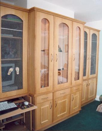 All our custom made furniture can be fitted in the most awkward of places and can show of your collection of books or hide the central heating boiler as the following photos show. We use a mix of solid timber with veneered mdf boards which gives more stability in the modern house (central heating and insulation shrinks solid wood).Painted furniture is very popular and we take pride in our sprayed finishes.